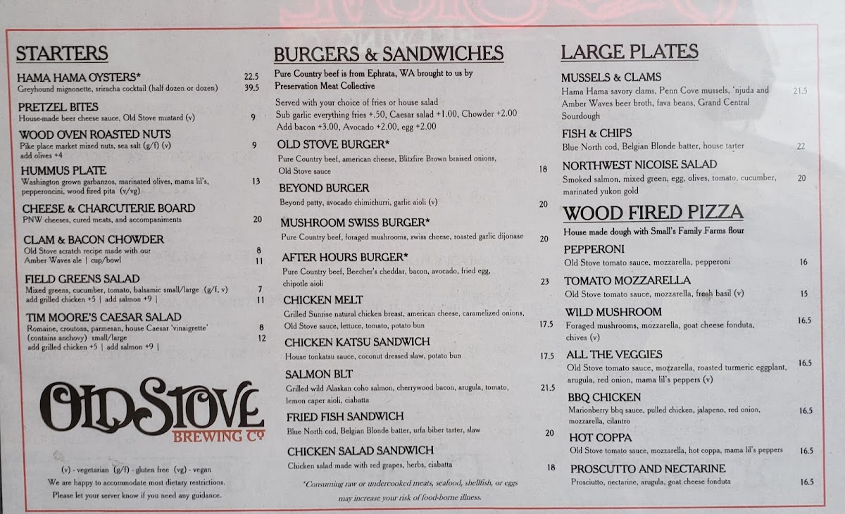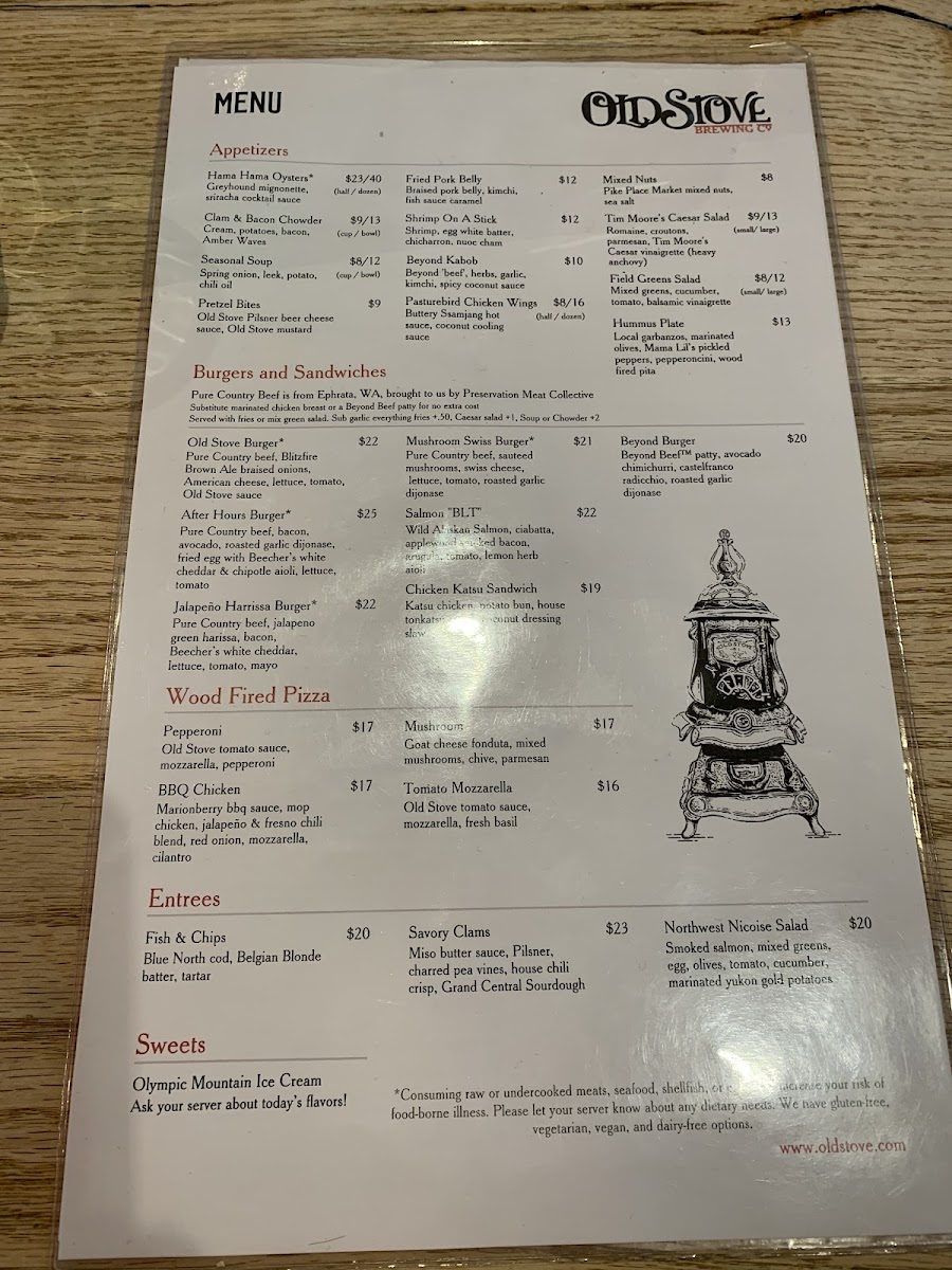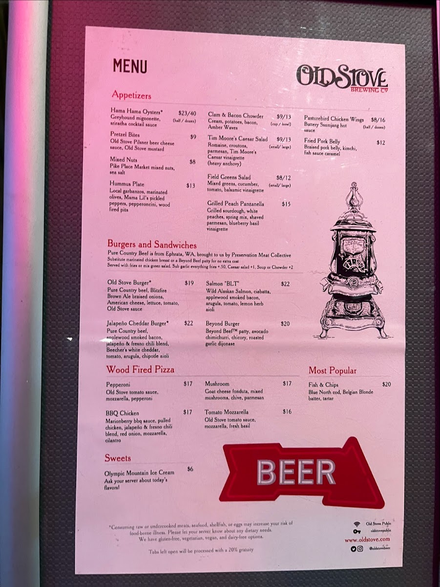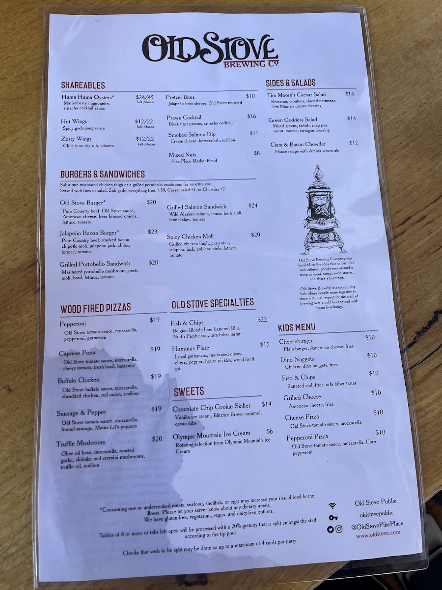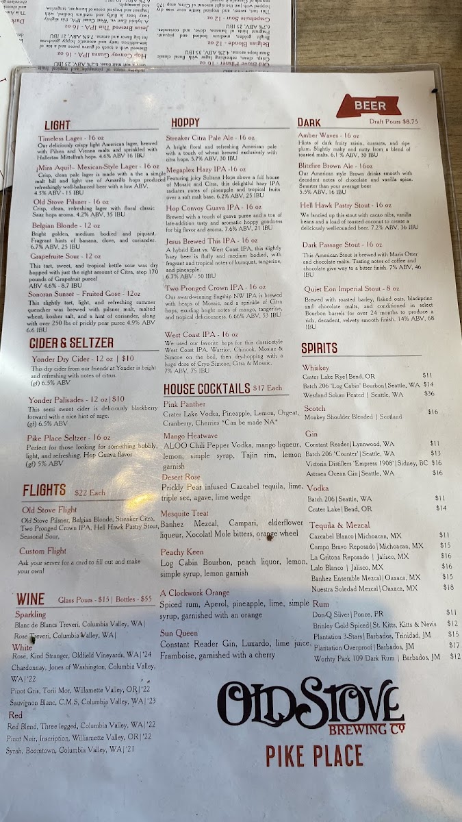 Old Stove Brewing Co — Pike Place Menu (2025 Update)