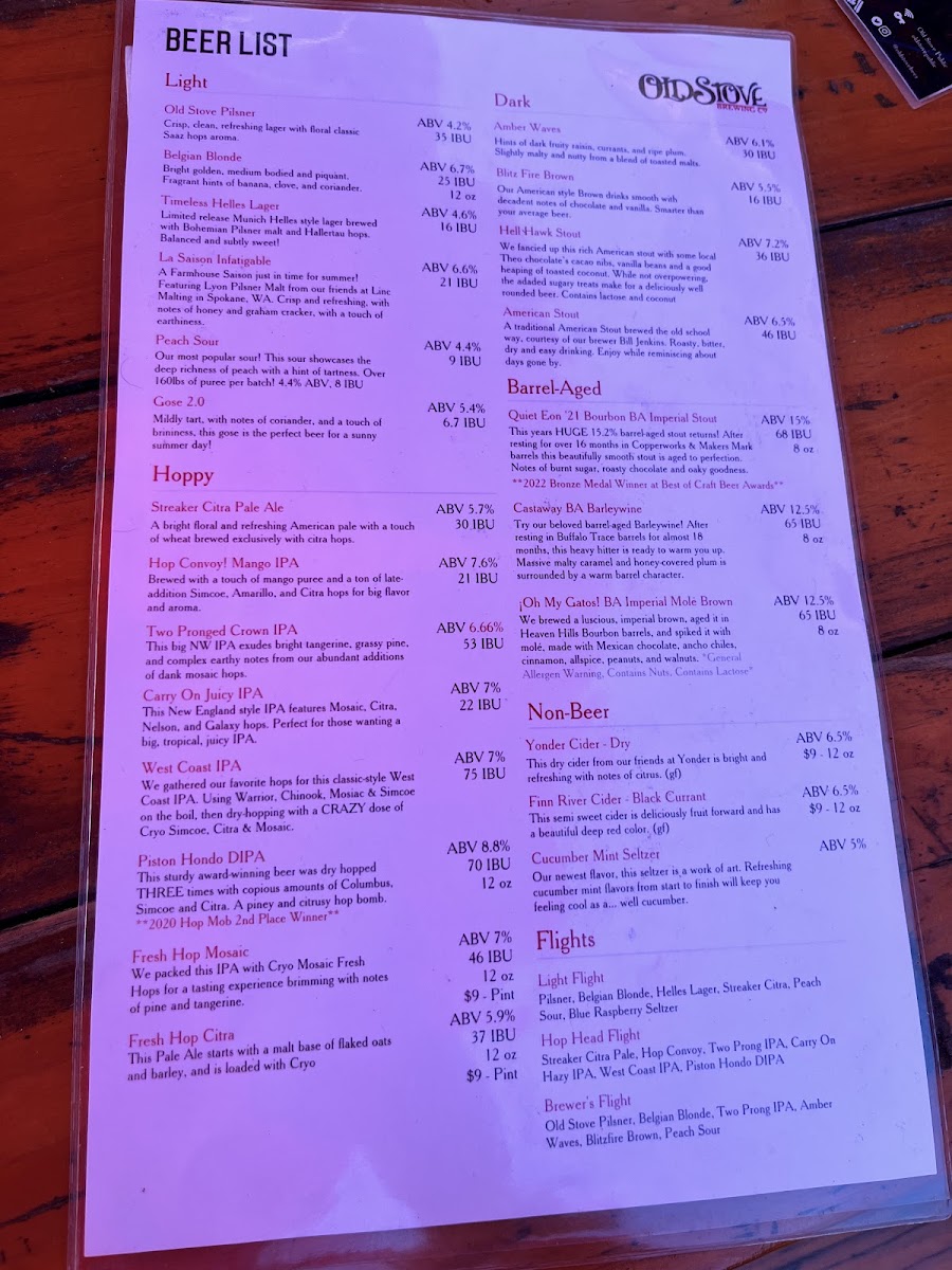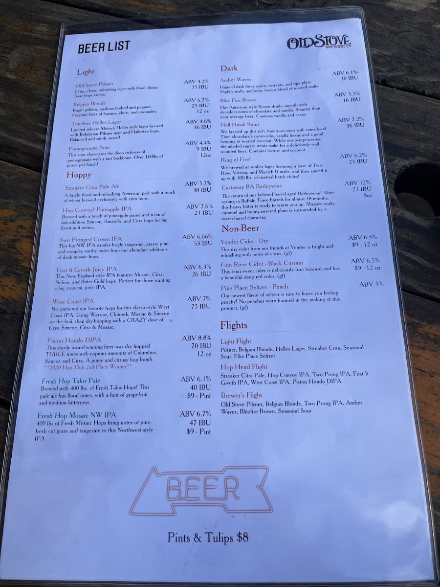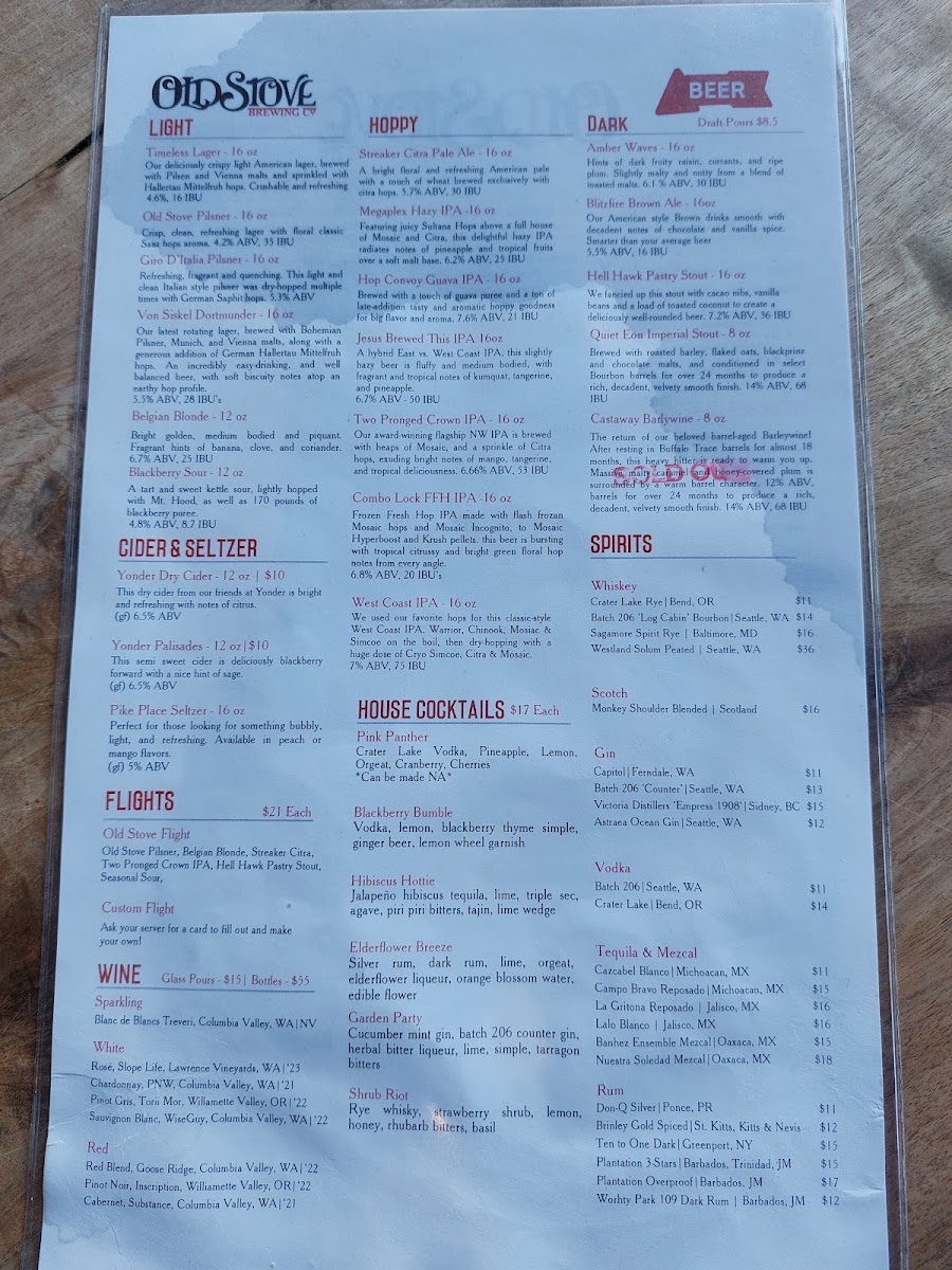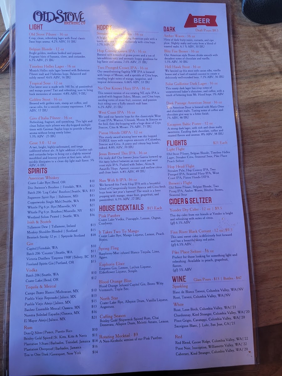 Old Stove Brewing Co — Pike Place Menu (2025 Update)